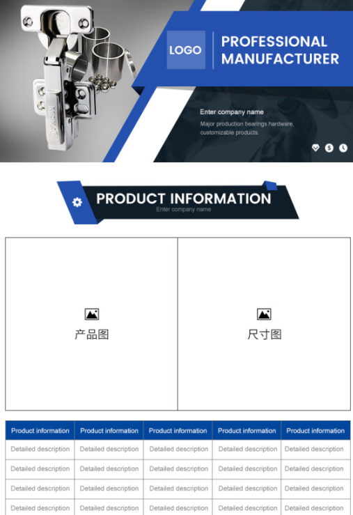 案例一:海報凸顯產(chǎn)品特點和企業(yè)實力,和下方放的產(chǎn)品細節(jié)圖和產(chǎn)品屬性剛好直接跟客戶說明產(chǎn)品的質(zhì)量過硬,符合五金行業(yè)買家的購買需求