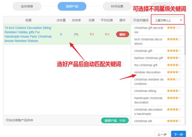 2.選好產(chǎn)品后會自動匹配關鍵詞