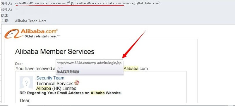 可以先看看這個(gè)郵件是不是釣魚郵件,識(shí)別小方法,看看郵件里面的鏈接是不是阿里巴巴的官方網(wǎng)址,比如如下這種: