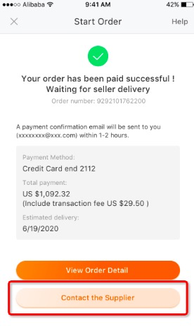 買家下單后點擊contact supplier,此時賣家會收到訂單卡片提醒,對于靜默下單較友好,可以第一時間收到買家已下單