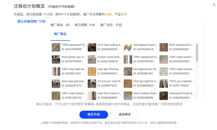 第五步:確認(rèn)升級完成后,請及時(shí)去關(guān)鍵詞計(jì)劃管理您的推廣關(guān)鍵詞和商品,強(qiáng)烈建議優(yōu)先添加實(shí)力優(yōu)品推廣