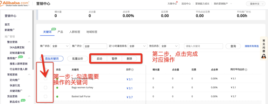step1:添加關(guān)鍵詞或調(diào)整底價(jià);