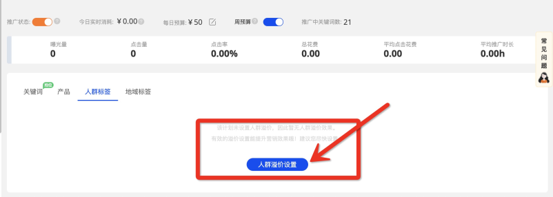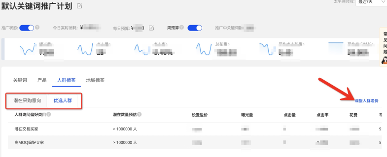 如您需要調(diào)整人群與地域溢價(jià)設(shè)置,點(diǎn)擊右側(cè)【調(diào)整人群溢價(jià)即可】