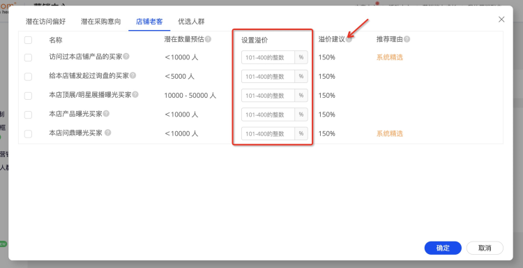 人群、地域溢價(jià)設(shè)置: