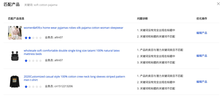 您可以通過產(chǎn)品的編輯與優(yōu)化,提升商品與關(guān)鍵詞相關(guān)性;