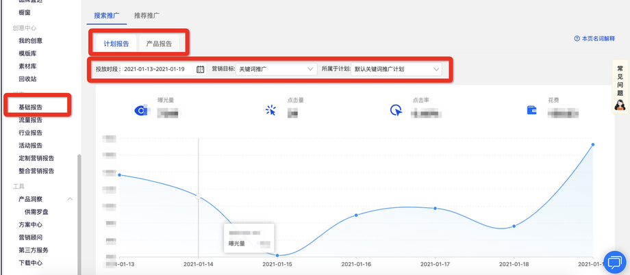 您可以通過基礎(chǔ)報(bào)告:查看關(guān)鍵詞推廣計(jì)劃的匯總數(shù)據(jù)、產(chǎn)品數(shù)據(jù);
