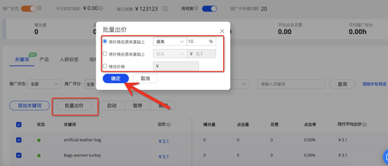 2、關(guān)鍵詞批量出價(jià)