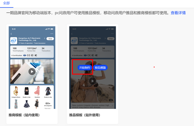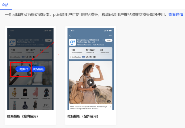 移動問鼎用戶推商模板(站內(nèi)使用)和 推品模板(站外使用)這兩個模板都可以使用