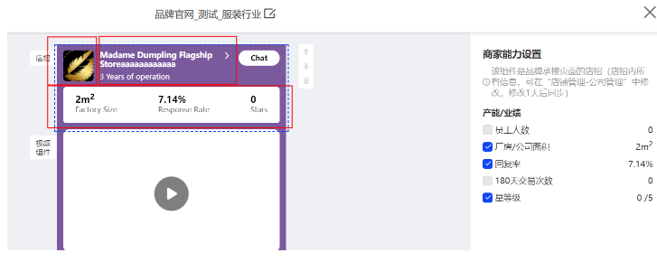 基礎(chǔ)設(shè)置完成后,開始正式制作官網(wǎng),首先制作店招;店招由企業(yè)LOGO,公司名,公司信息(產(chǎn)能./業(yè)績)3部分組成。其中公司信息(產(chǎn)能/業(yè)績)有5個字段組成,在想要推廣的字段前打勾即可,最多勾選3個,最少勾選1個,推薦勾選3個,這樣頁面相對比較美觀。