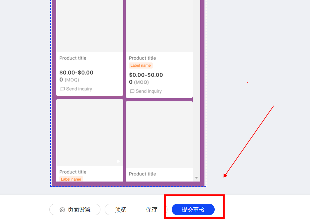 1.頁面制作完成,點擊最下方的“提交審核”按鈕,一般3~5天會審核完成,審核通過后即可綁定投放