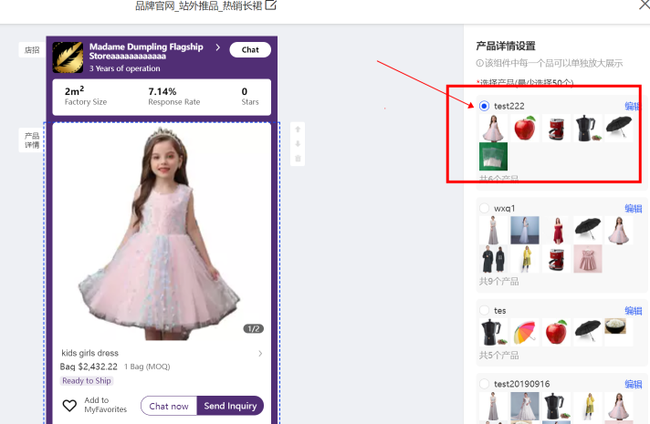 劃重點2_如下圖3,產(chǎn)品添加好后,右側(cè)勾選想要推廣的商品組,在預(yù)覽的時候左側(cè)中只會看見一個商品,此處實際投放每次只會展示1個品,這個品是在外投的時候從商品池選出的引流品,買家瀏覽信息時看到這個品,點擊該品進入我們的品牌官網(wǎng)頁面,所以該品會主動展示出,讓買家所見即所得,提升產(chǎn)品點擊率