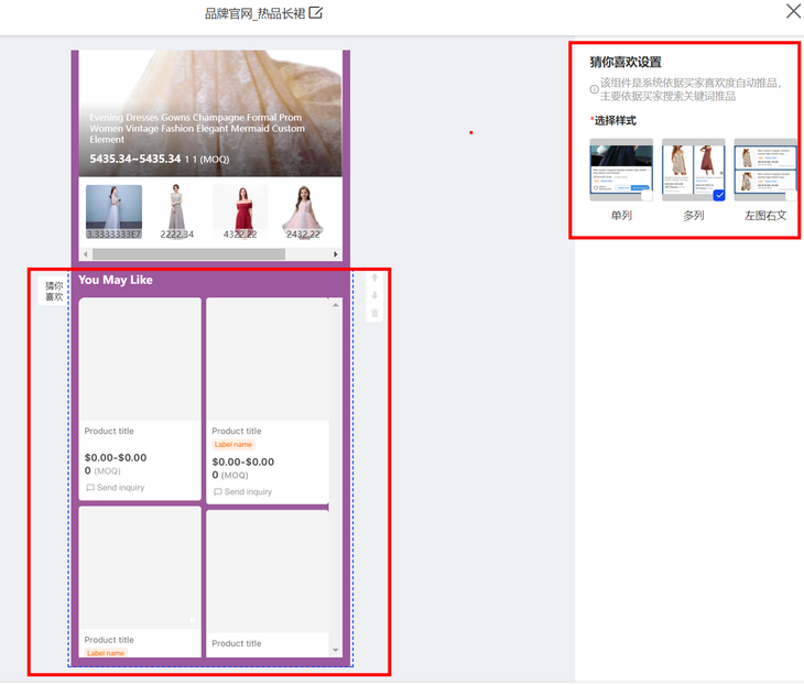 猜你喜歡組件是頁面最下方的商品展示組件,不可移動到上方。