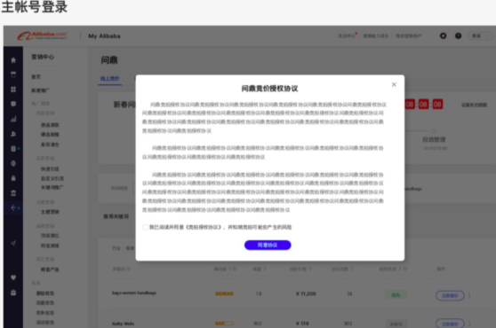 登錄問(wèn)鼎后臺(tái),接受協(xié)議,首次參與競(jìng)價(jià)需先接受協(xié)議,協(xié)議只能由主賬號(hào)接受。