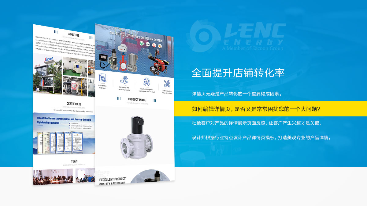 旺鋪首頁是企業(yè)形象的最好展示,對流量轉(zhuǎn)化起著至關(guān)重要的作用。同時首頁具備產(chǎn)品導(dǎo)購的功能,優(yōu)秀的界面布局能引導(dǎo)客戶長時間駐足店鋪,并且有效的找到相關(guān)產(chǎn)品以獲得更多詳情。