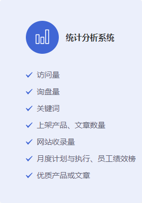 營銷型每頁內(nèi)置TKD,全站帶有網(wǎng)頁數(shù)據(jù)統(tǒng)計,更利于搜索引擎抓取,最大限度的將詢盤轉(zhuǎn)化為訂單,讓品牌官網(wǎng)連接一切。